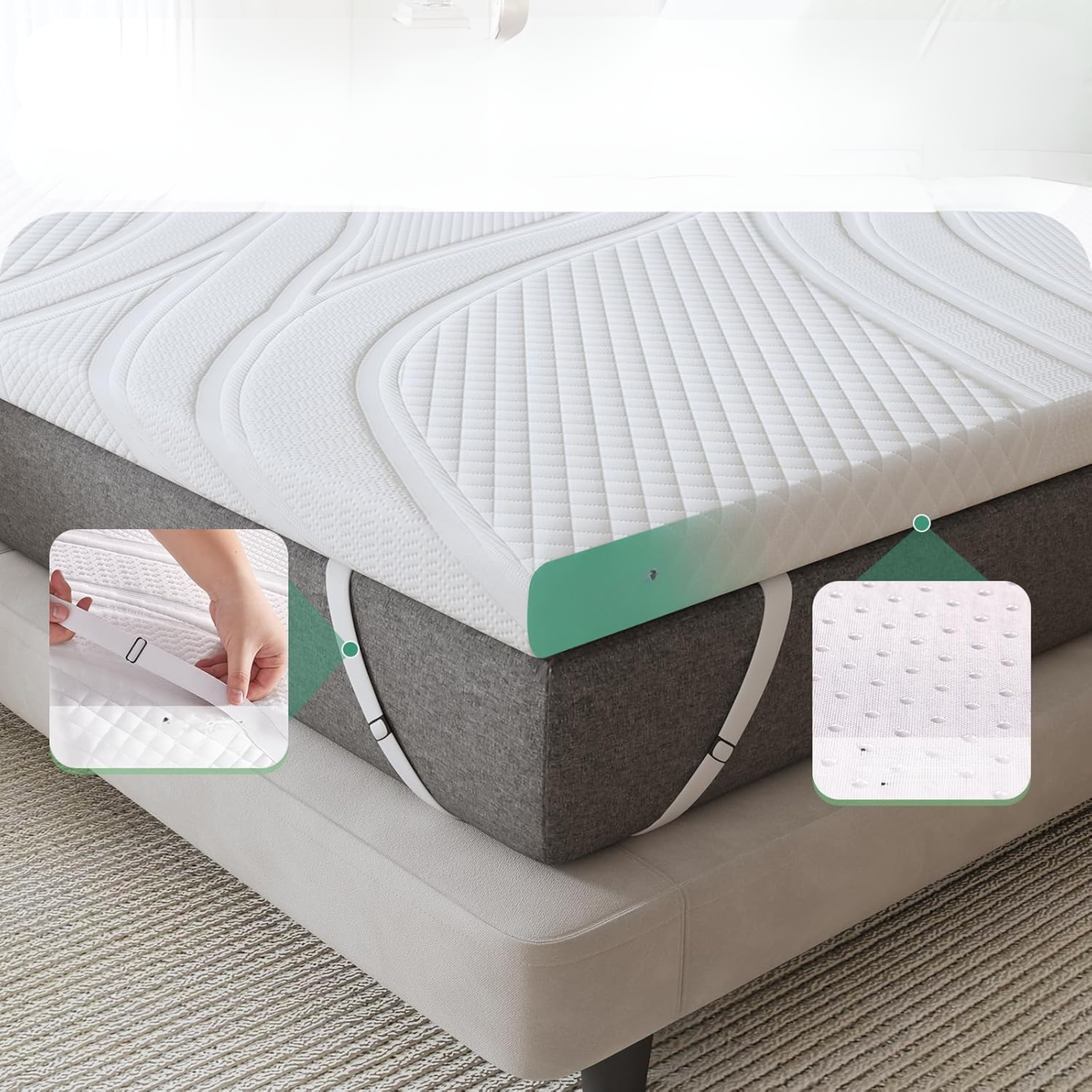 Améliorez votre matelas avec un surmatelas 140x190 cm. La mousse à mémoire de forme gel offre confort, régulation de température et absorption de l’humidité. Conception antidérapante, lavable et certifiée pour votre sécurité.